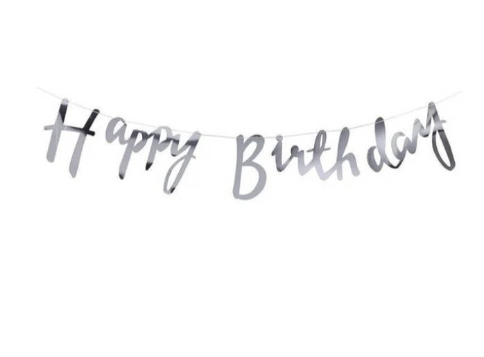 Гірлянда паперова "Happy Birthday" прописом (срібна) 1,5м.