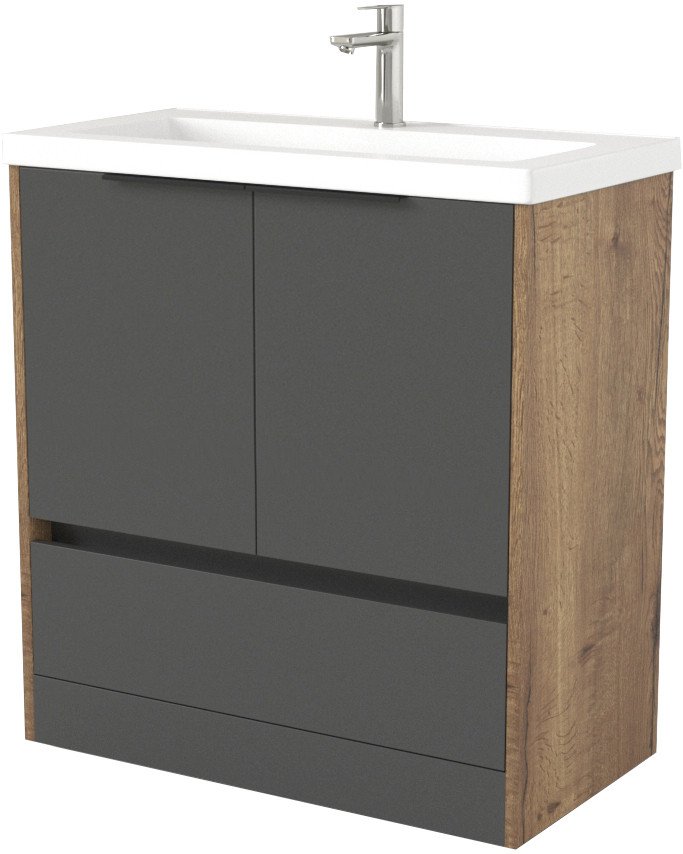Дабер Тумба под умывальник 017 Тобага/Эридан 80 Т17.8Т.0.22Ч (дуб галифакс/серый/ручка черная)