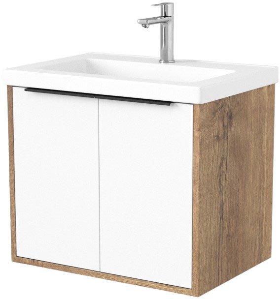 Дабер Тумба под умывальник 018 Тобага/Эридан/Артвин 60 Т18.6Т.0.21Ч (дуб галифакс/белый/ручка черная)