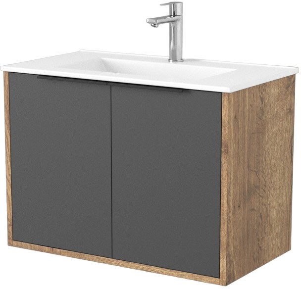 Дабер Тумба под умывальник 018 WeltWasser Deilbach 7517-70 Т18.7W.0.22Ч (дуб галифакс/серый/ручка черная)