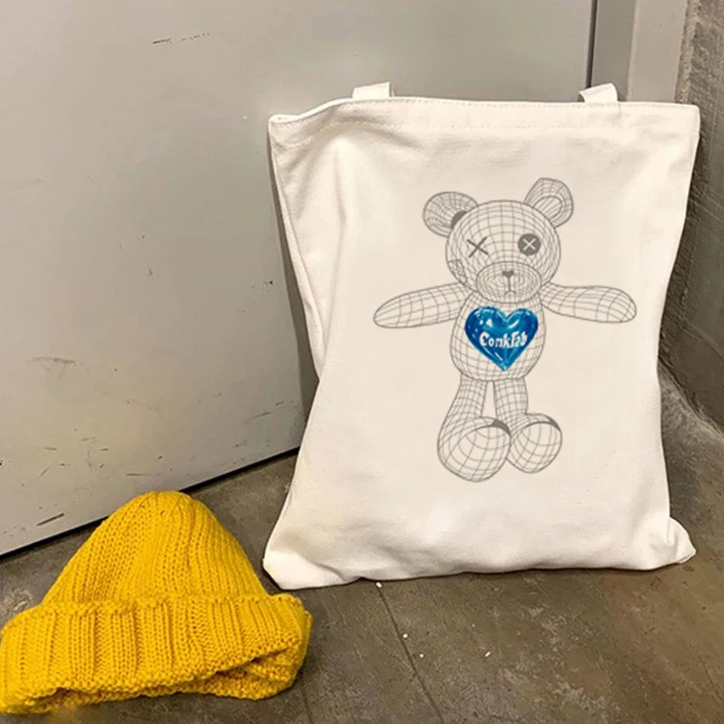 Дамская сумка для покупок с мультяшным медведем, милая Холщовая Сумка для покупок в стиле Харадзюку, Сумочка на плечо для девушек
