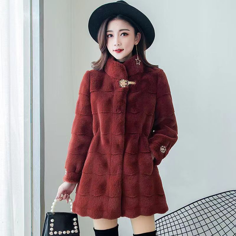 Датская норковая шуба женская зимняя новая утолщенная шерстяная большого размера средняя и длинная шуба для матерей черная 2XL 135-75 kg бордовый