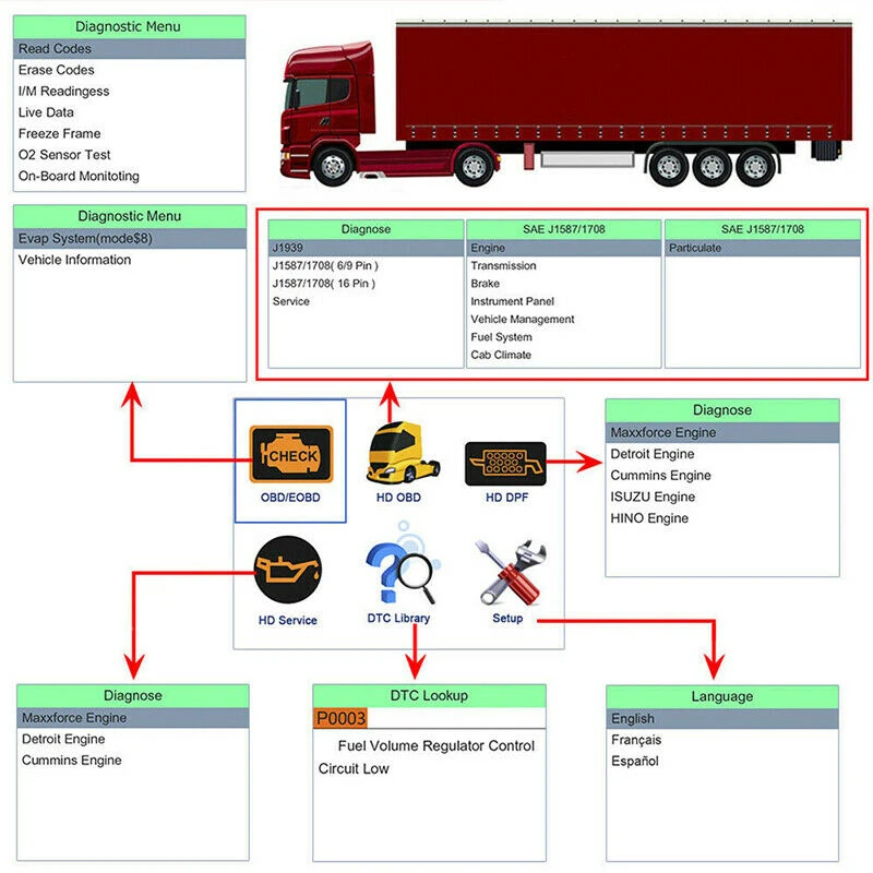 For Car and Truck V500 OBD OBD2 Scanner 2 in 1 Car Auto Diagnostic Tool CR-HD Heavy Duty Truck EOBD OBD PK ELM327 V1.5 NL102
