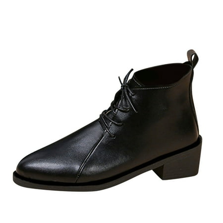 GWAABD Womens Dress Boots Ankle Fashionable Autumn Women Ankle Boots Heel Solid Color Black Lace Up Comfortable Casual