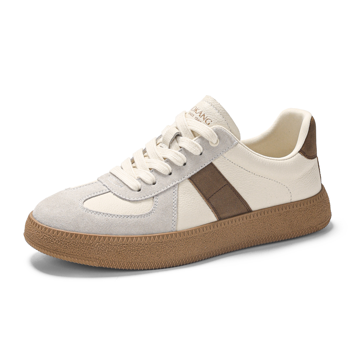 AOKANG Скользоустойчивые износостойкие дышащие мужские скейтерские кеды лоу-топ бело-коричневые, цвет White Brown