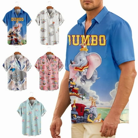 Big & Tall Men Cartoon Collared Tees Comfortable Relaxed-Fit Bowling Shirts Up to 8XL