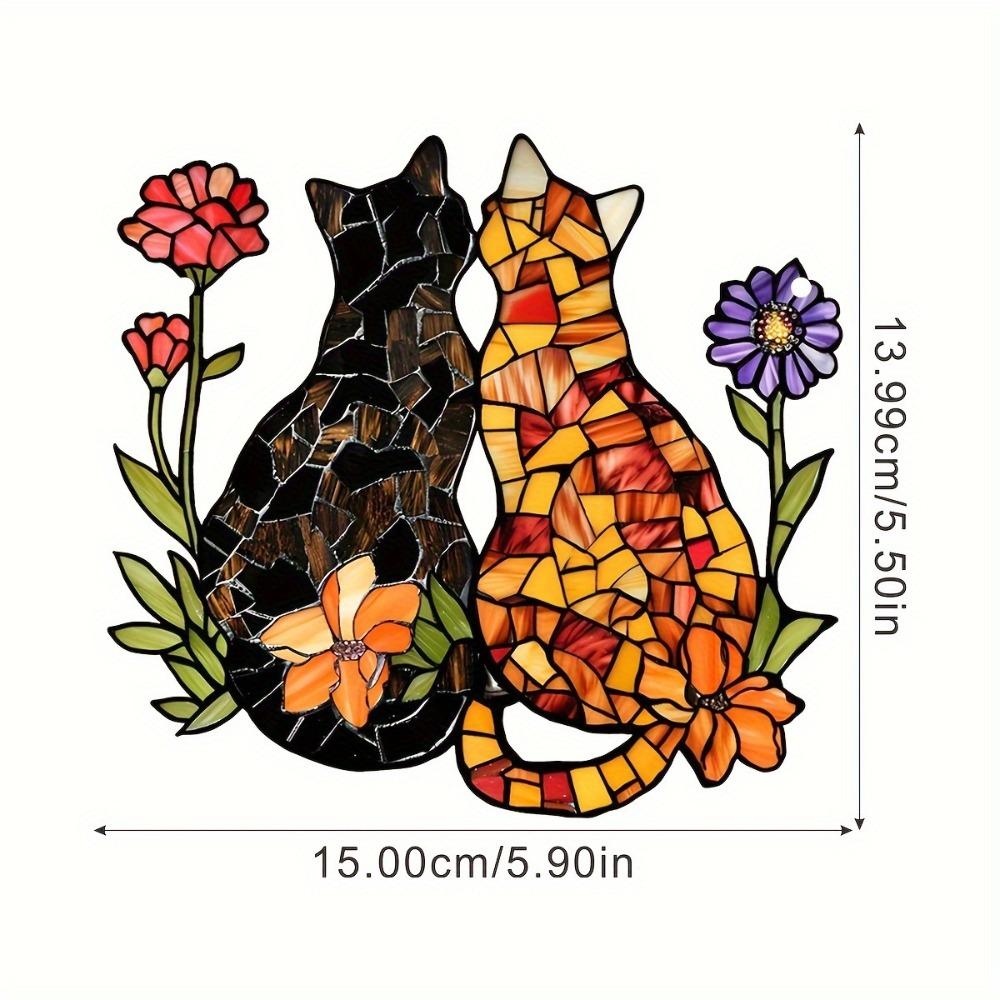 Два Кота Друга Акриловые Колокольчики Ветра Черный Оранжевый Котенок Подвесное Украшение Милая Киска Живопись для Стены Окна Коридора Ловец Солнца