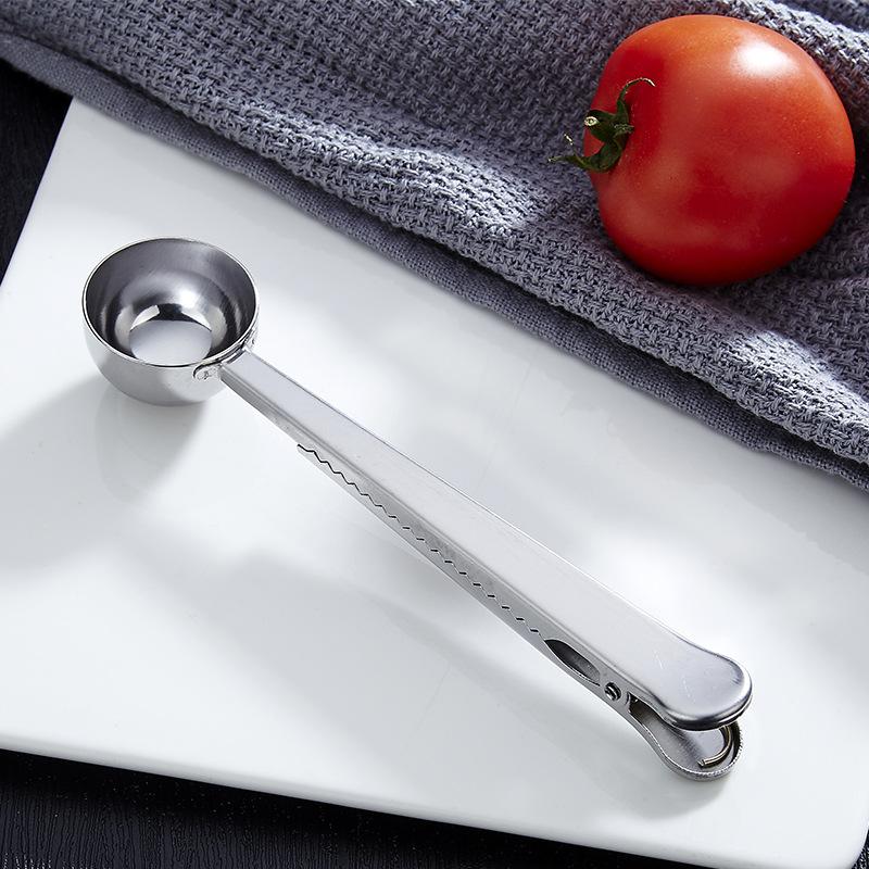 Два в одном из нержавеющей стали Кофейная ложка с зажимом для кухни Мерные ложки для чая Молоко Сухое Кофейные зерна Ложки 17.5cm Length
