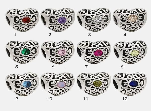 fine jewelry authentic 925 sterling silver bead fit pandora charm bracelets hollow birthstone heart charms safety chain pendant di5622616, Bronze;silver