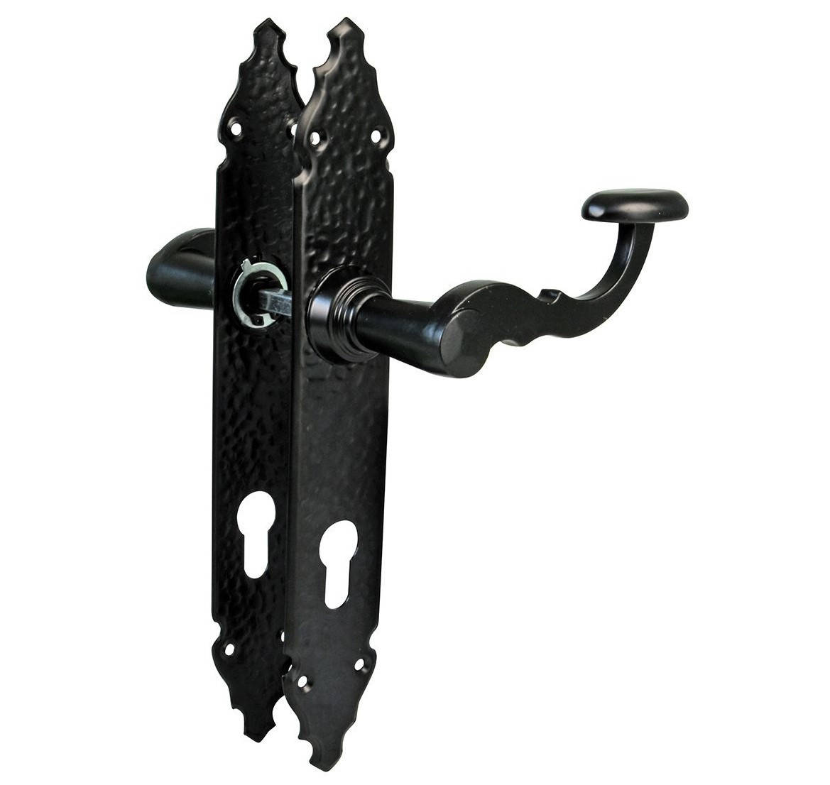 Amig 100PB - набор кованых ручек для входной двери из износостойкого материала Zamak на планках из высококачественной стали с отверстием под европейский цилиндр. Размеры планки - 280x45x3,5 мм.