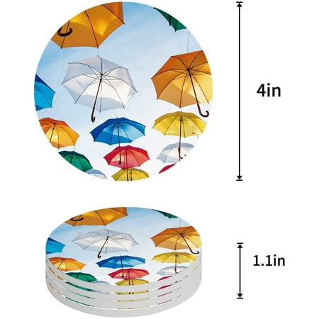 KXMDXA Colorful Umbrellas Set of 8 Round Coaster for Drinks Absorbent Ceramic Stone Coasters Cup Mat with Cork Base for Home Kitchen Room Coffee Table Bar Decor