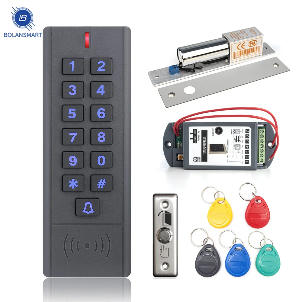Дверной комплект системы контроля доступа RFID + Электрический магнитный замок + язычок для карт + мини-считыватель карт + поставщик питания + в...