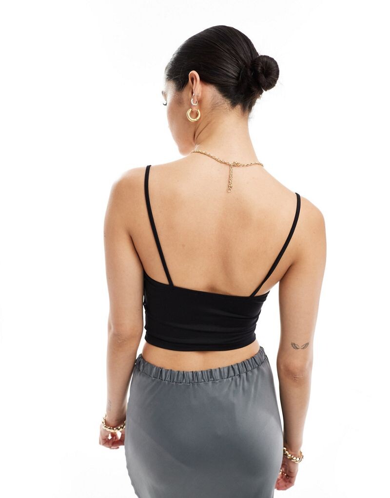 Топ от StradivariusДо поясаУпаковка из двух штукV-образный вырез Фиксированные бретели.Укороченная длина.Облегающий крой.