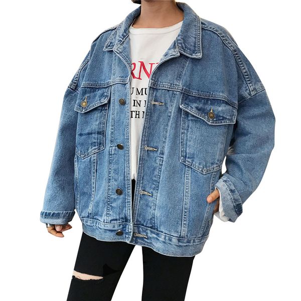 ins style 2019 women jackets oversize boyfriend style jeans coat retro cowboy denim loose casual jacket chaqueta mujer, Black;brown
