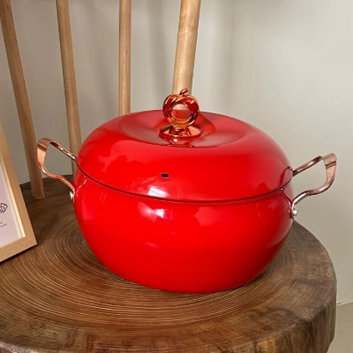 Двойная кастрюля для тушения ушей, большая емкость для приготовления пищи с антипригарным покрытием, 8 л, тонкое железо, кастрюля для домашнего здоровья, яблоко, новая красный
