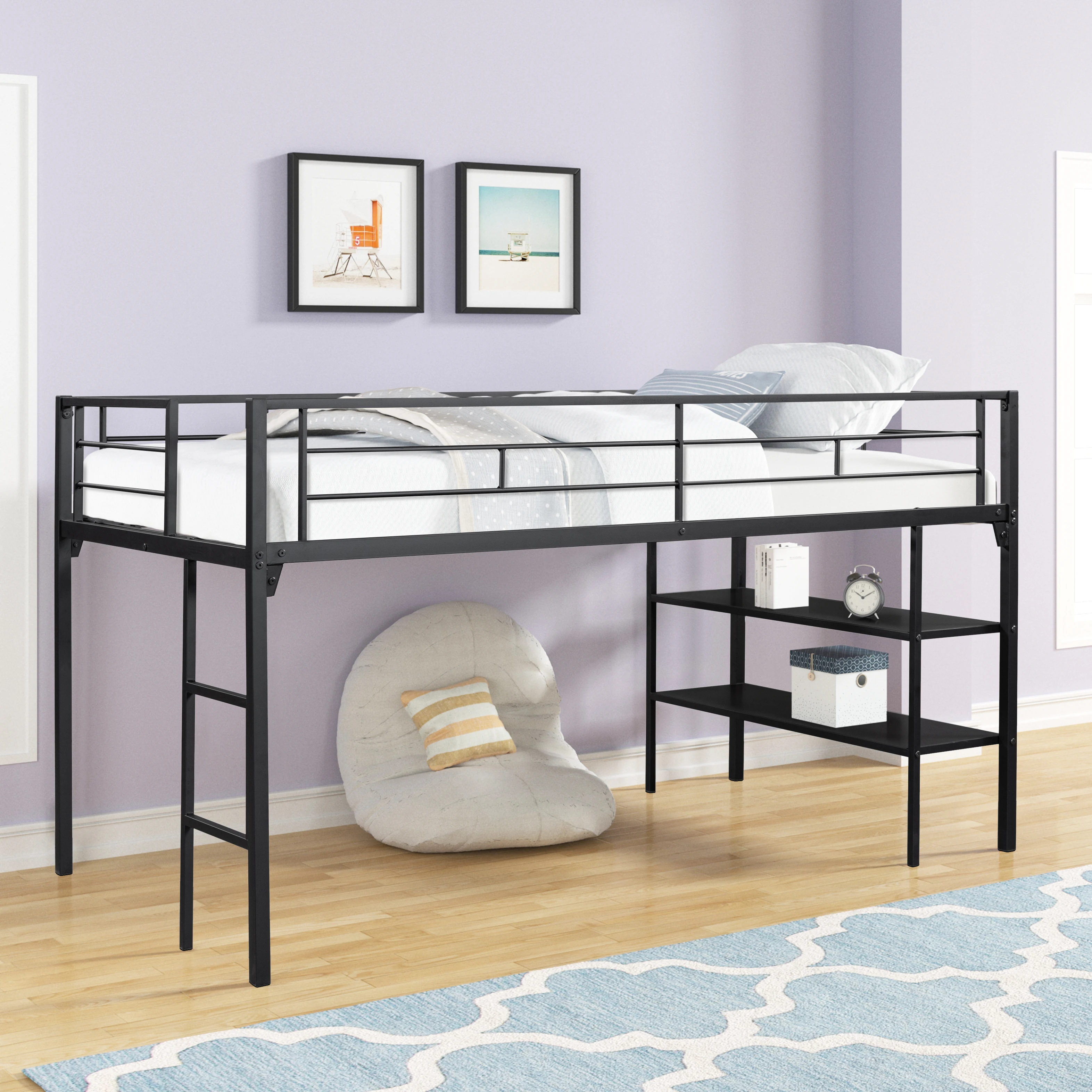 Двойная металлическая низкая кровать в стиле лофт с полками для хранения [US-W]