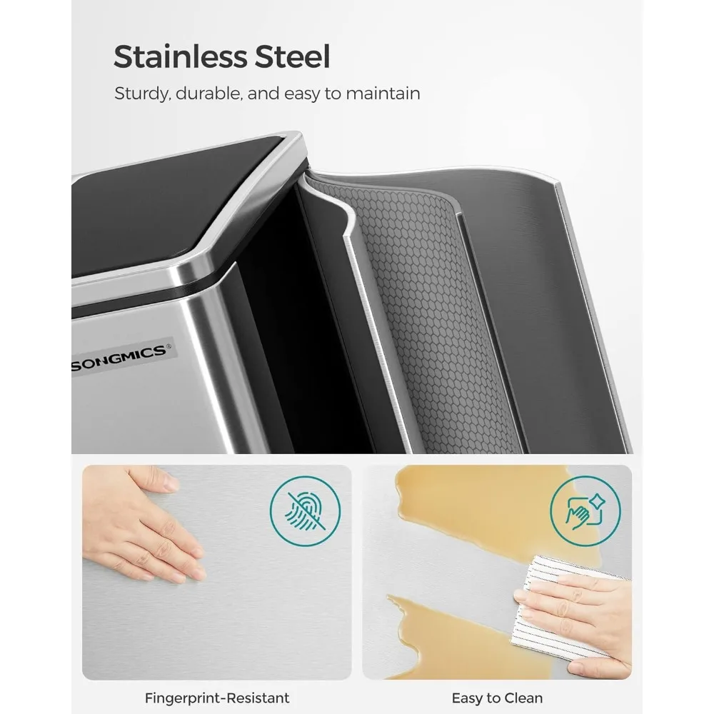 Двойная мусорная корзина, 2x4 Гал (2x15 л), мусорная корзина со стальной педалью и крышкой и ведра внутри