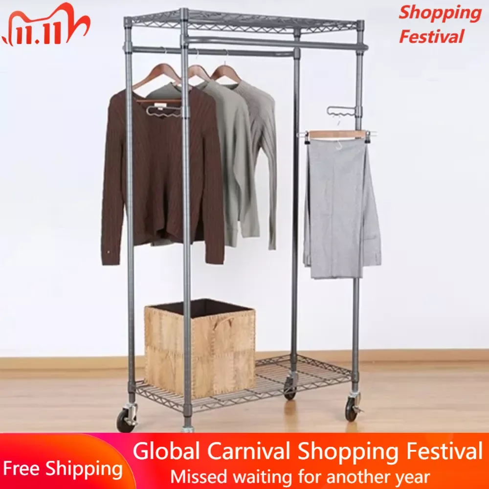 Двойная подвесная вешалка для одежды, органайзер для одежды 38,2 дюйма Wx 23,6 дюйма Dx 66,1 дюйма H, органайзеры для гардероба, бесплатная доставка, металлическая отделка