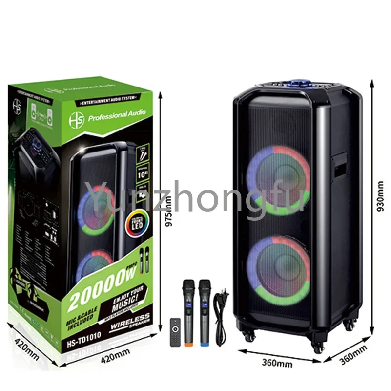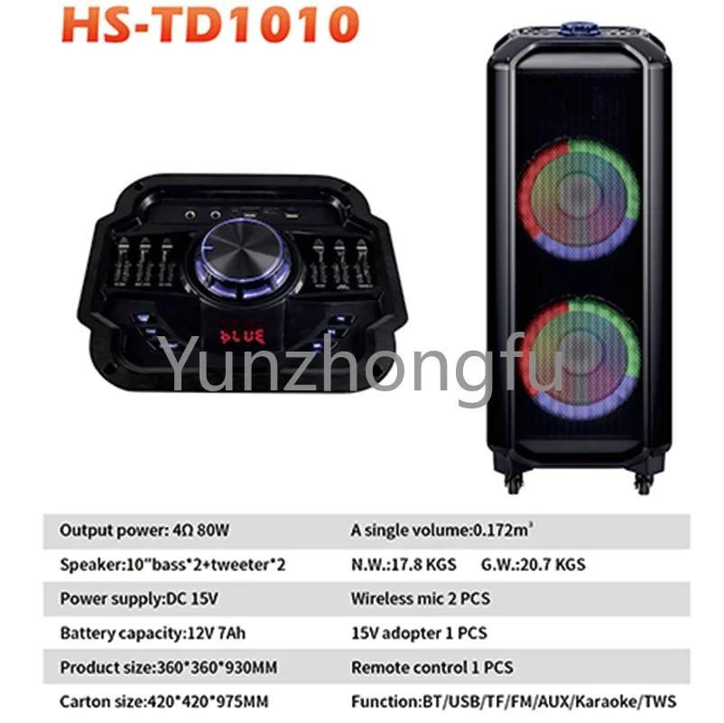 Двойная 10-дюймовая уличная Мобильная Bluetooth-колонка, большой громкости, сабвуфер, корзина, зуб, звук HS-TD1010