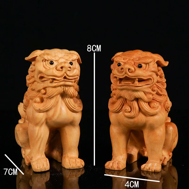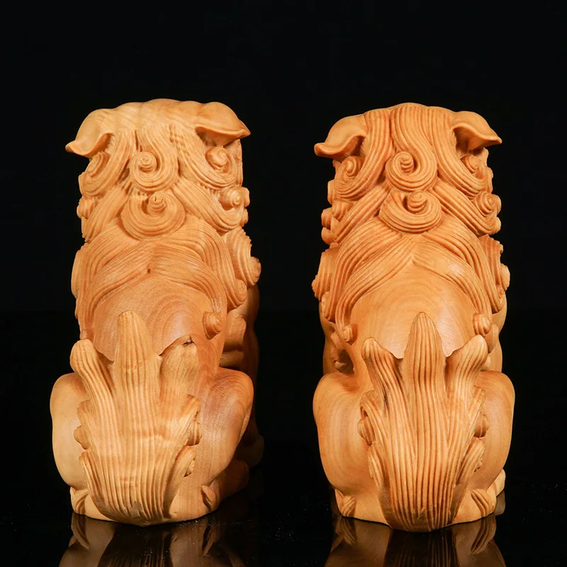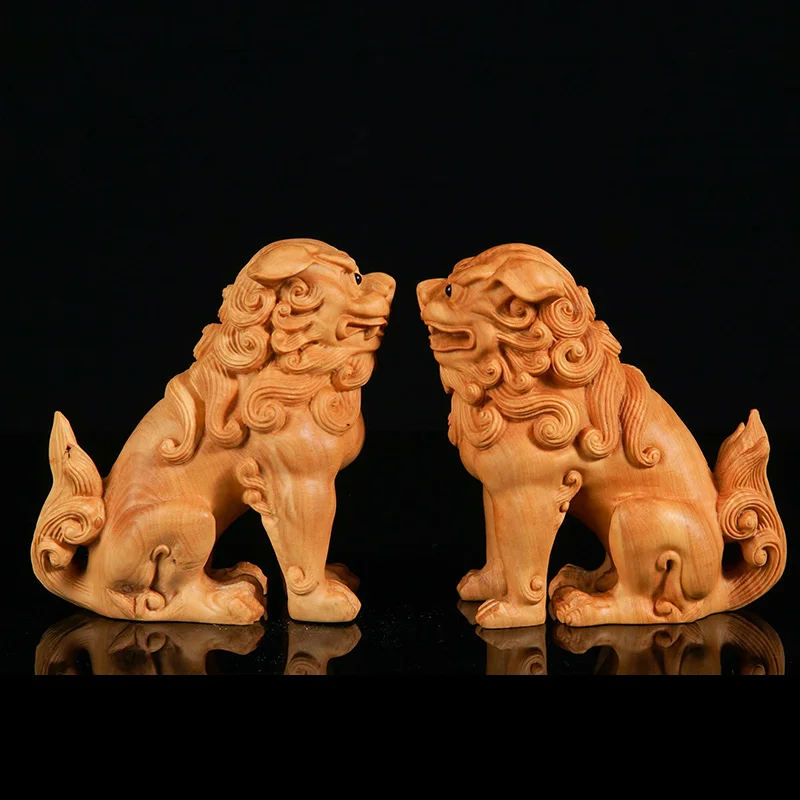 Двойные китайские статуи-хранители из массива дерева ручной работы фэн-шуй