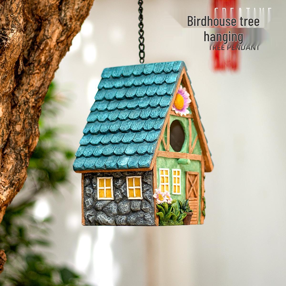 Дворик Попугай Скворечник: Подвесное гнездо из смолы и садовое украшение, готовое к зиме Default