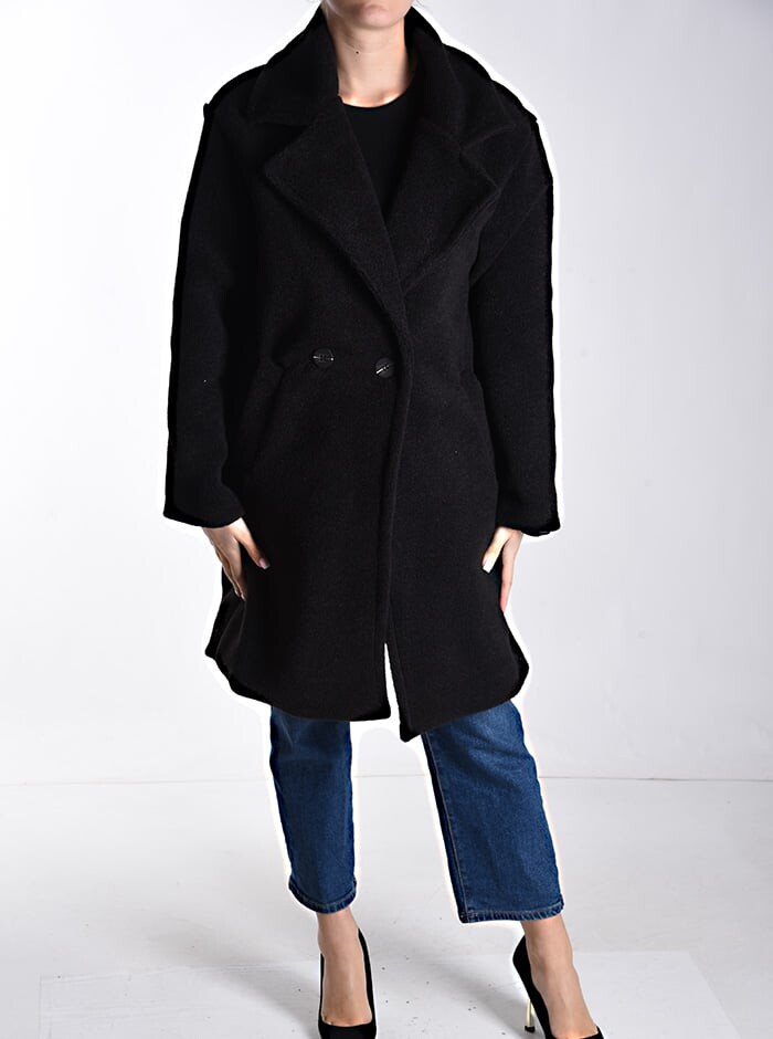 women's wool & blends double sided cashmere coat for middle and long style, loose thickened pure woolen, Black