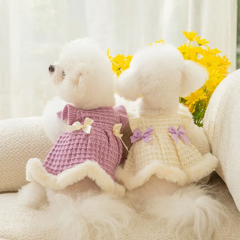 Двуногая Одежда для собак с бантом, юбка в стиле принцессы, утолщенная одежда, Тедди, чихуахуа, теплая, осенне-зимняя