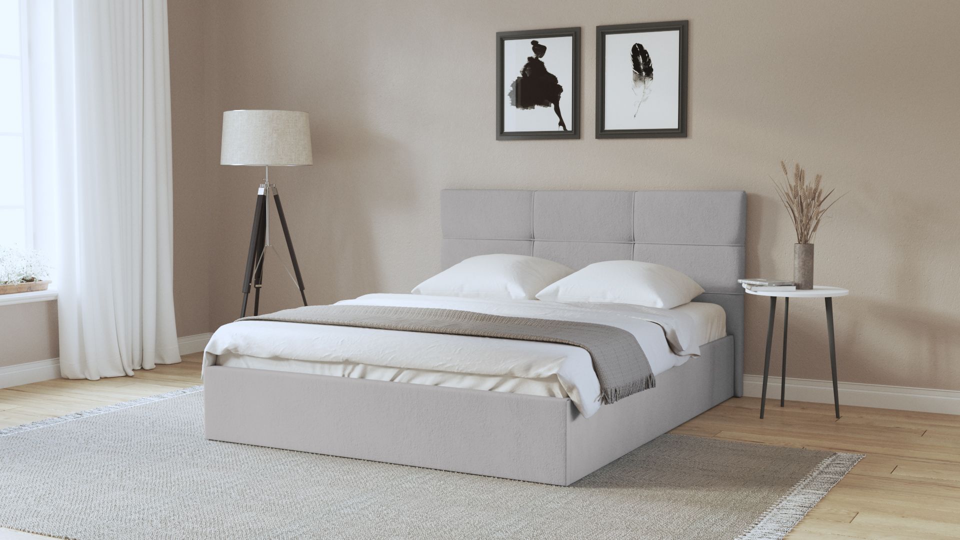 Двуспальная кровать ARMOS с ПМ Thea ECO Велюр Teddy 023 серый 140х200, Разноцветный, Thea ECO
