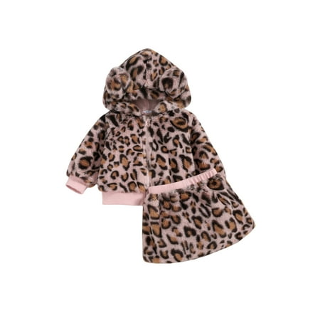 Luckinbaby Girl’s Fashion Leopard Plush Long Sleeve Coat and Short Skirt Set