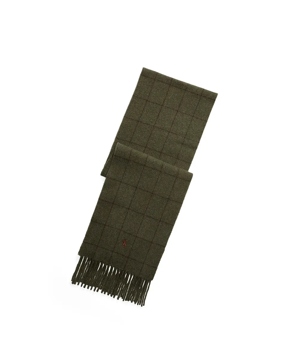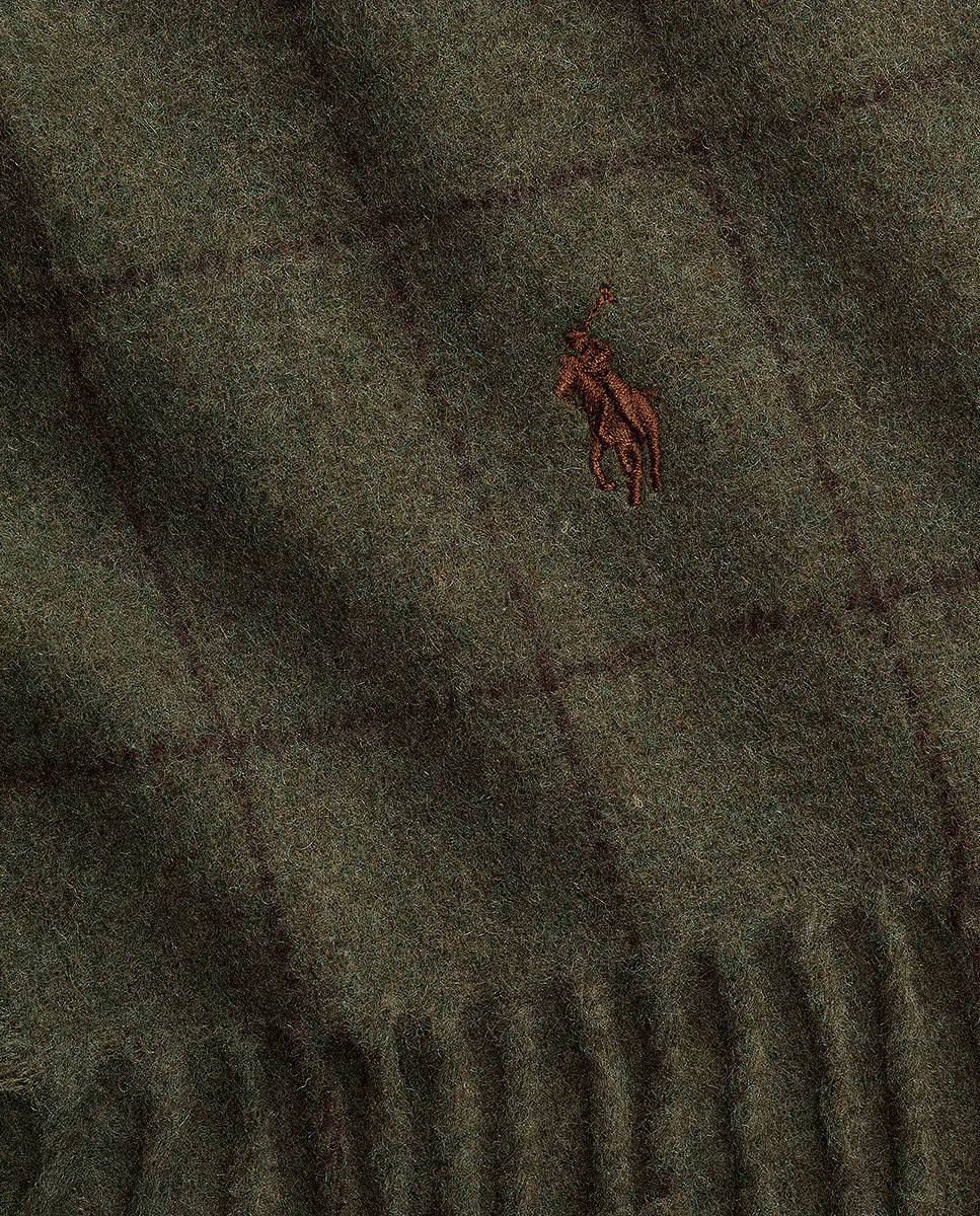 Этот шарф изготовлен из шерсти и украшен клетчатым принтом, бахромой и фирменной вышивкой лошади.