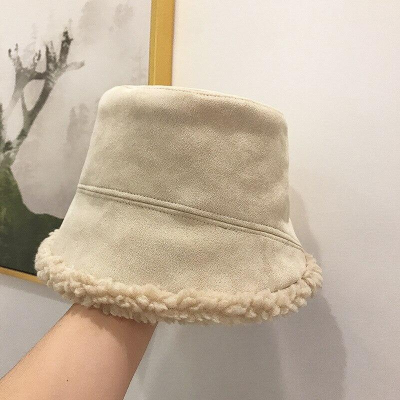 Двусторонняя замшевая плюшевая теплая шляпа-ведро из овечьей шерсти, женская зимняя однотонная шляпа-ведро с цветным рисунком, женская бежевый