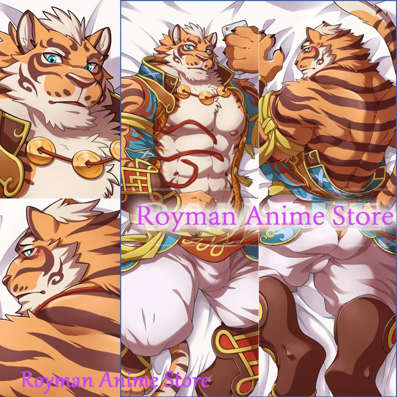 Двусторонняя наволочка для подушки Dakimakura Anime Nekojishi с пушистым тигром, 2 в 1, 60*180 см
