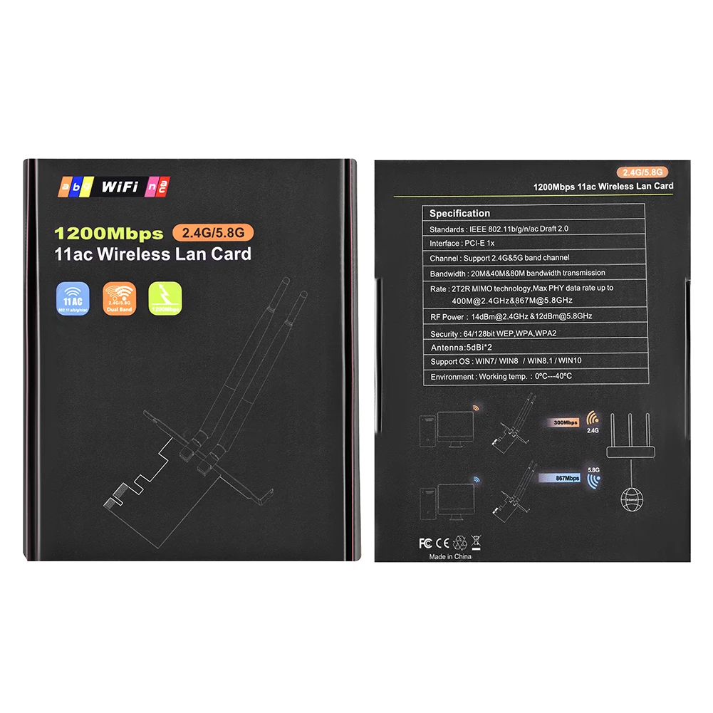 Двухдиапазонный PCIe Беспроводной Wi-Fi адаптер 1200 Мбит/с сетевая карта 2,4G/5 ГГц Wi-Fi беспроводная сетевая карта для ноутбука