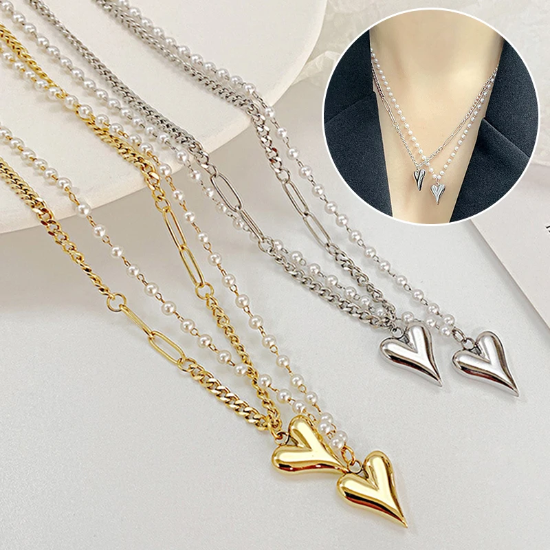Двухслойное ожерелье с кулоном в виде сердца, цепочка до ключиц, инкрустированная стразы, ювелирные изделия, подарок для женщин вечерние НК...