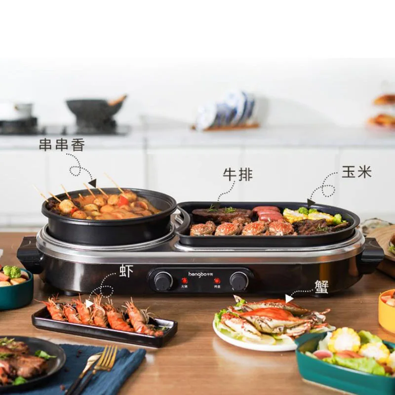 Двухслойный семейный Электрический гриль для барбекю в виде выдвижного ящика, бездымный гриль, электрический гриль для барбекю