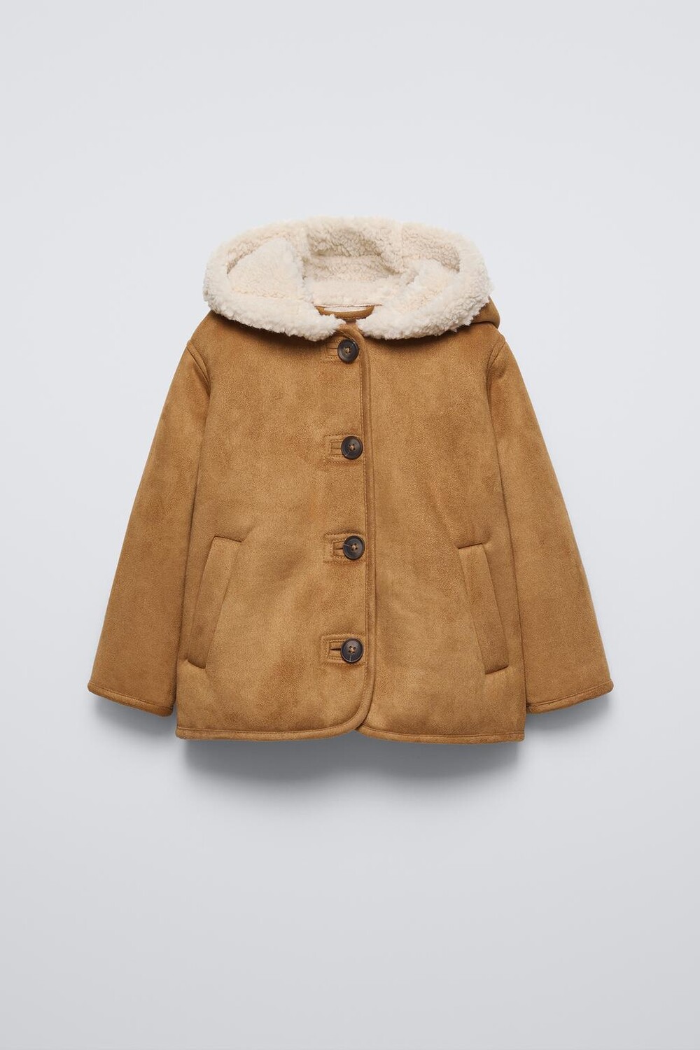 Двухстороннее пальто с капюшоном ZARA, средний-кэмел