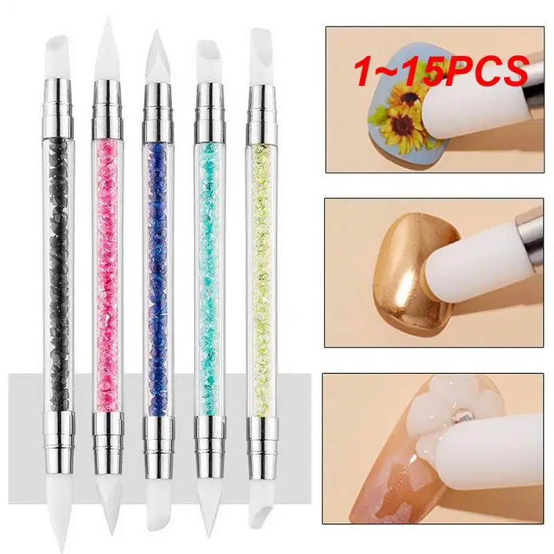 Двухсторонние силиконовые гравировочные искусственные 3D акриловые кисти для ногтей, зеркальные искусственные маникюрные кисти, 1 ~ 15 шт.
