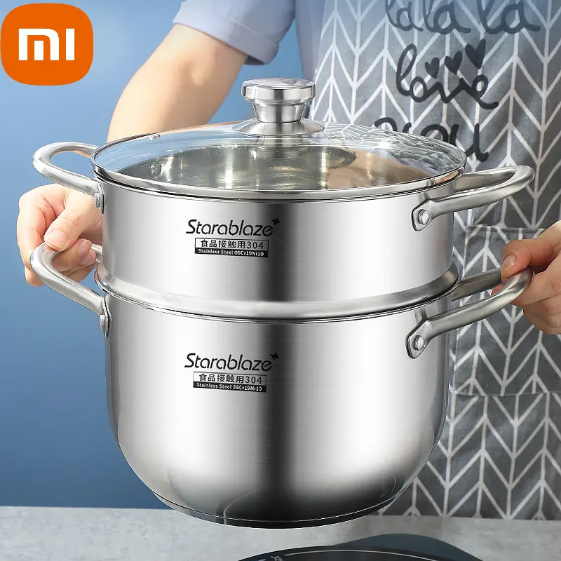 Двухуровневый/многоуровневый Пароварка из нержавеющей стали Xiaomi, многофункциональный паровой горшок, для кухни, газовой плиты, паровой горшок