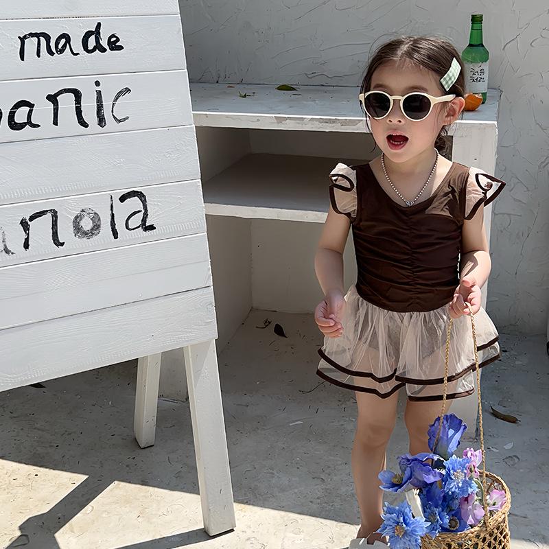Девочки Кофейного Цвета Юбка из Тюля Слитный Купальник на Лето 130cm