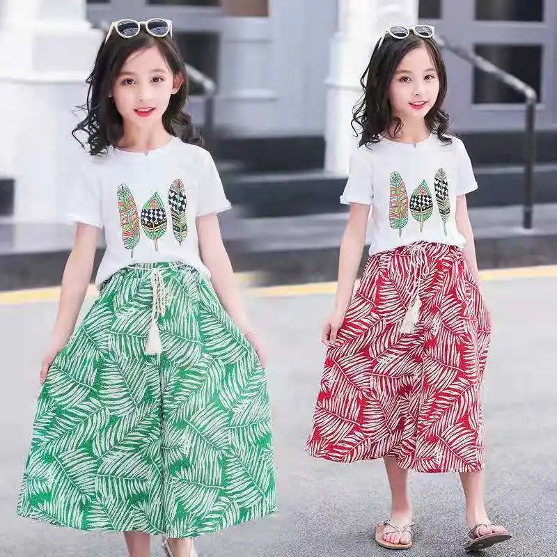 Девочки, комплекты летней одежды для мальчиков 2021 Новый свободного кроя для детей летняя детская одежда для девочек свободные штаны + футбо...