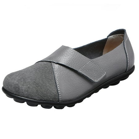 HRSR Orthopedic PU Leather Loafers Soft Sole Casual Flats Shoes for Women Students(Gray 38)