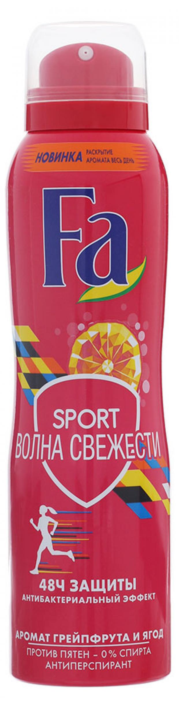 FA Sport Двойное Действие Волна Свежести аромат грейпфрута и ягод Аэрозоль дезодорант-антиперспирант с антибактериальным эффектом, против пятен, 0% спирта