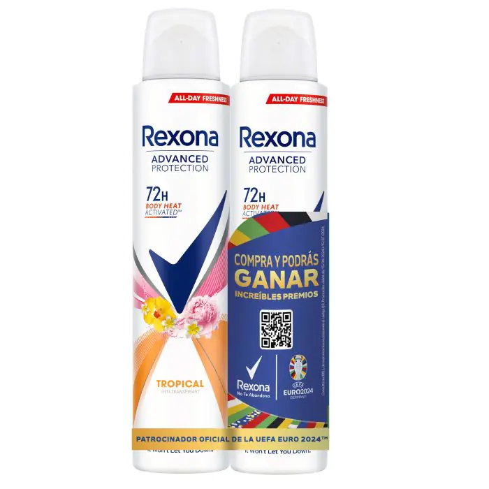 Дезодорант desodorante advanced protection tropical spray Rexona, объем 2 x 200 мл