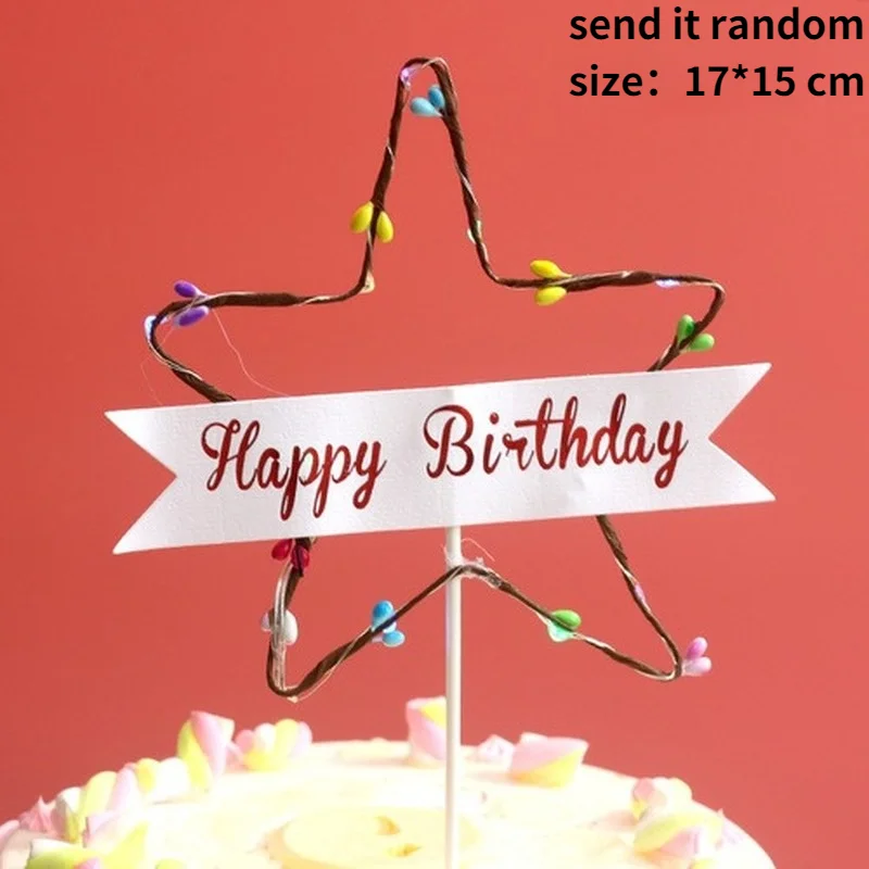 Декоративная гирлянда для торта с пятиконечными звездами, красивые Звездные огни, фантазийное креативное украшение для торта, вставка карт...