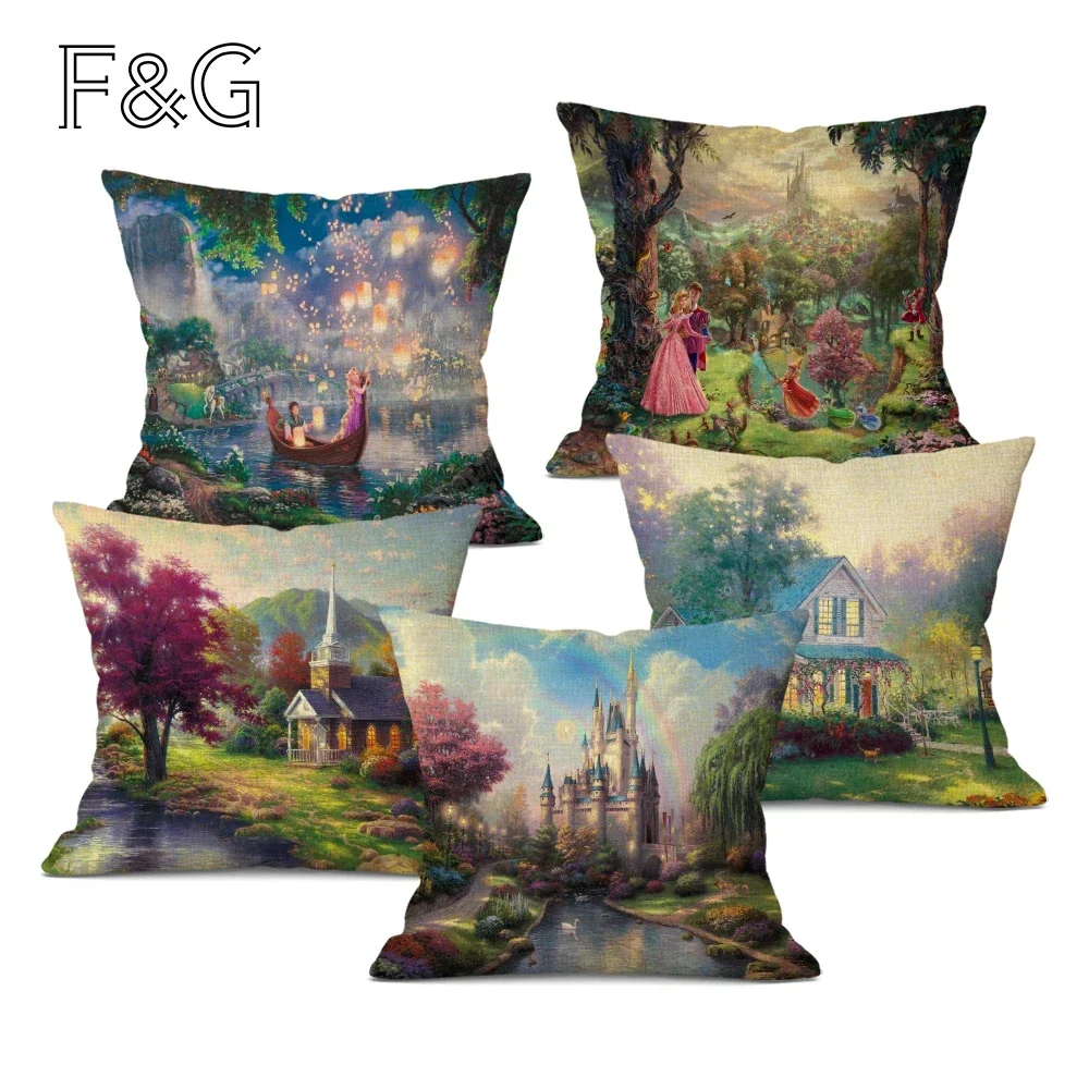 American Countryside Fields Gardens Scenery Art Oil Painting Decorative Pillowcase Beautiful Fairy Tale Linen Cushion Cover