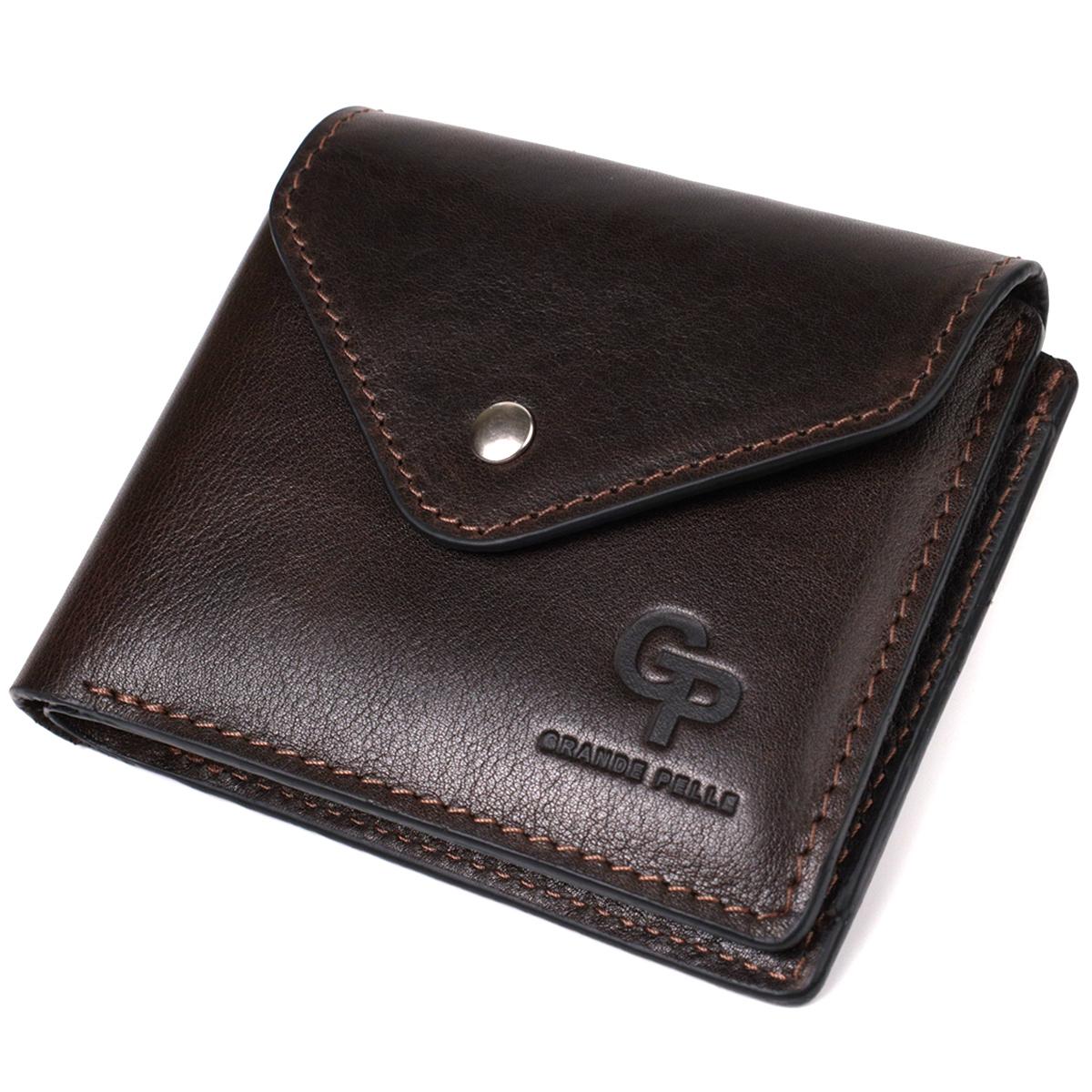 Чоловічий гаманець з монетницею з натуральної глянсової шкіри GRANDE PELLE Wallet 16807 Коричневий