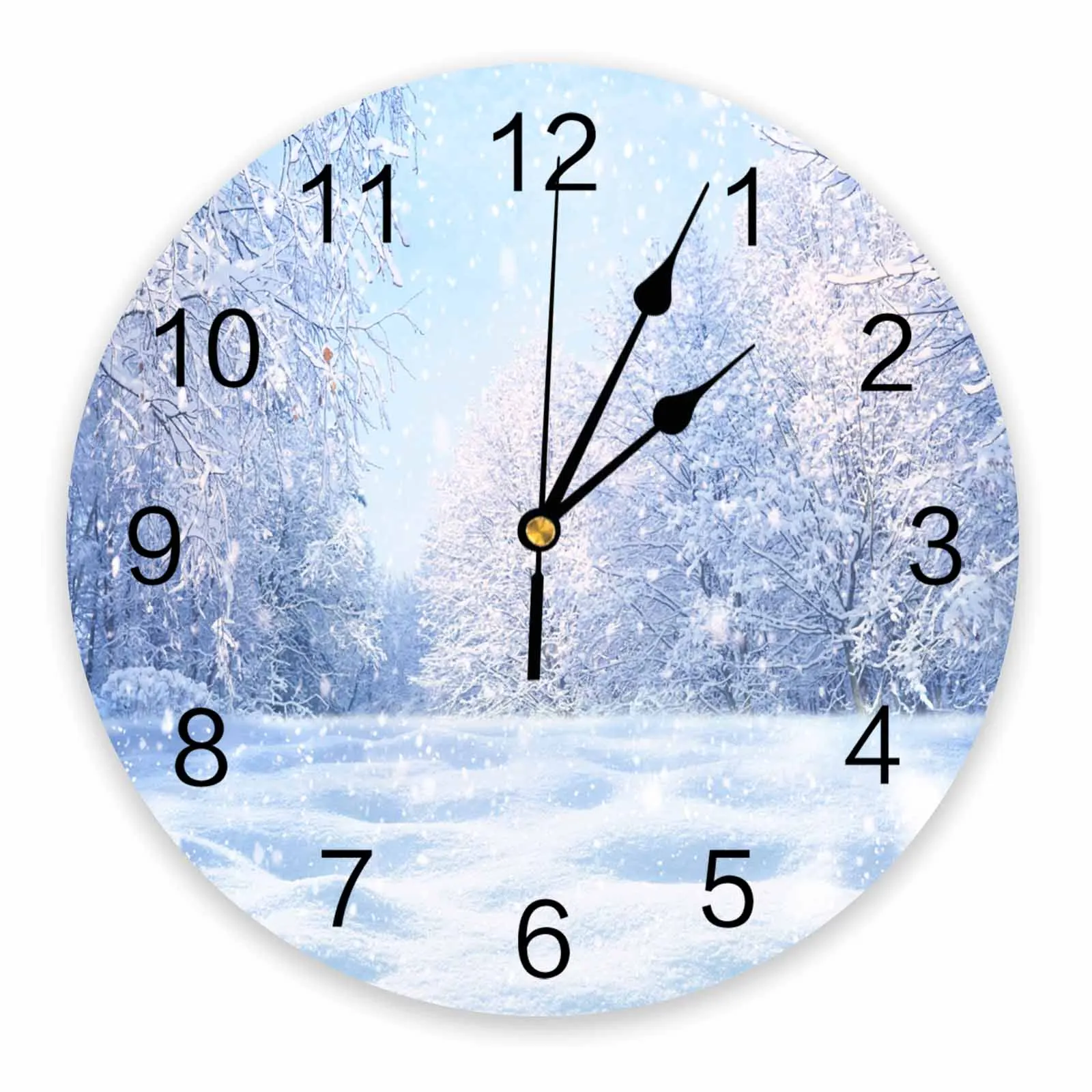 Декоративные круглые Настенные часы, нетихие большие настенные часы с изображением снежного леса, снежинок, растений, Листьев, спальни, диз...