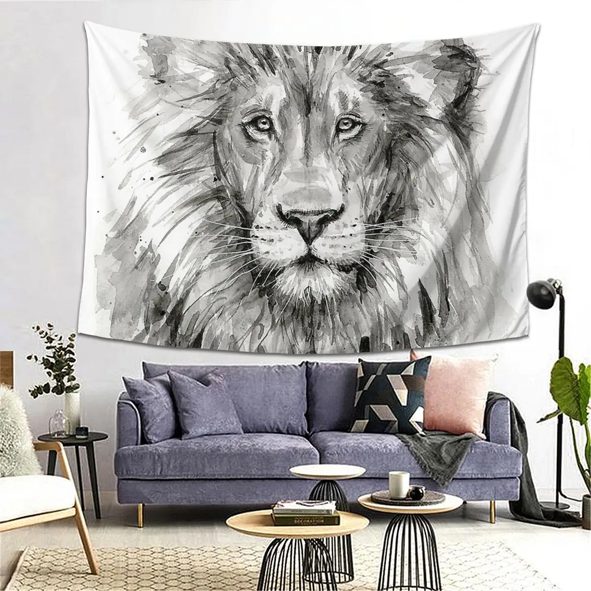 Декоративный настенный гобелен с рисунком льва акварелью для гостиной, спальни