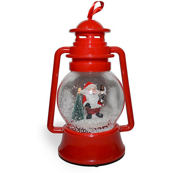 Фонарь пластиковый с новогодней композицией внутри. При включении фонарь начинает светиться, искусственный снег вращается, играет новогодняя мелодия "Jingle Bells". Высота фонаря 24,5 см.