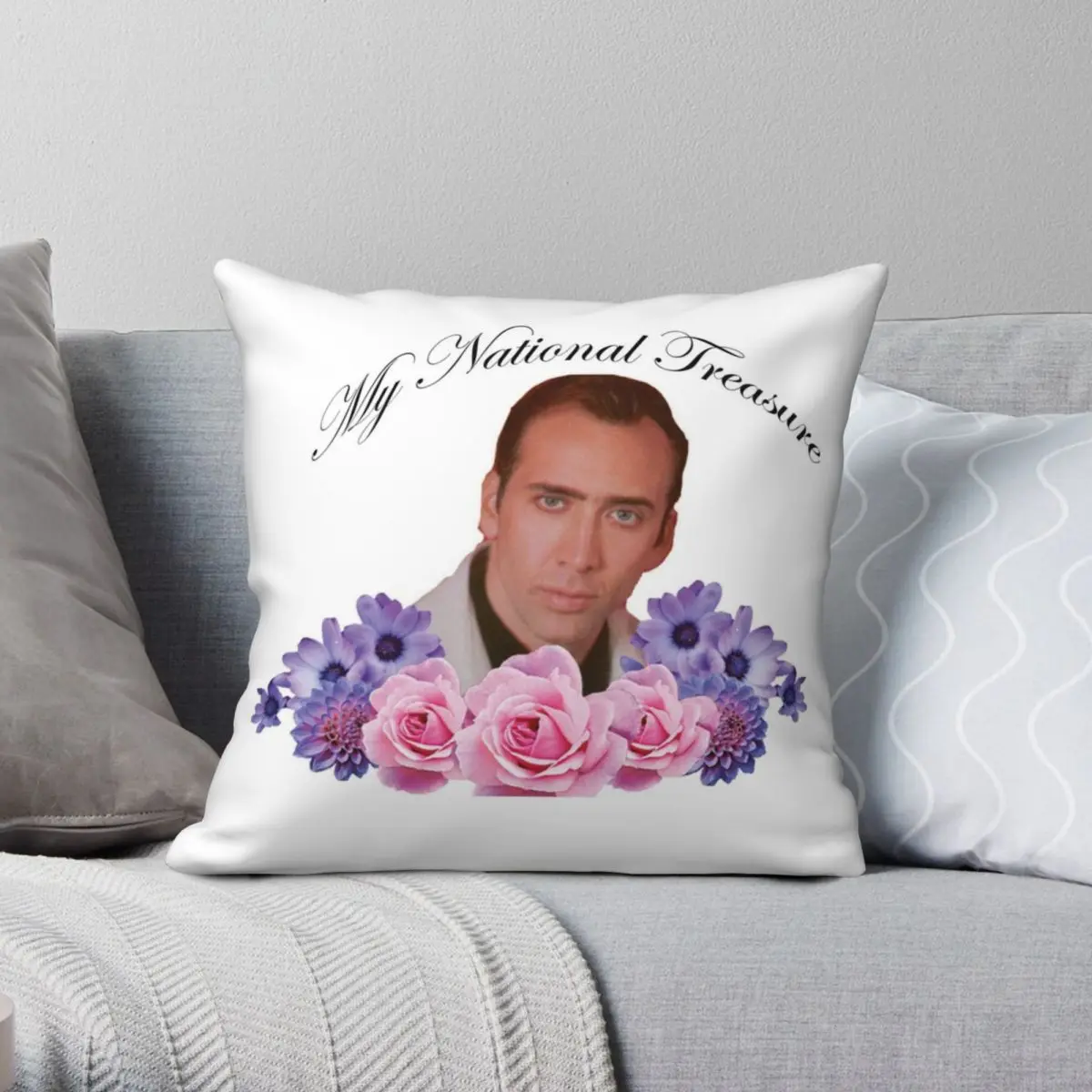 Декоративный чехол с квадратными подушками Николая Кейдж My National Treasure из полиэстера и льна